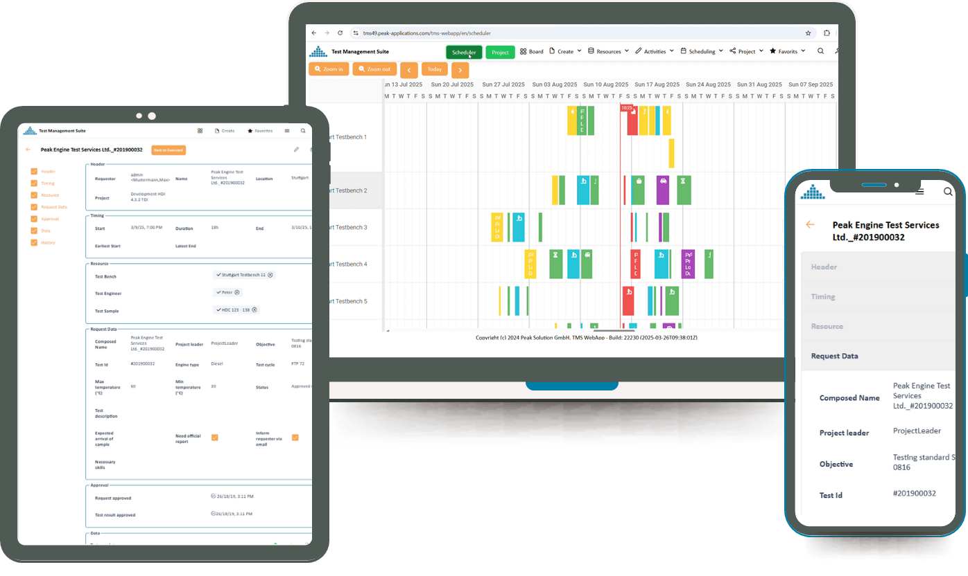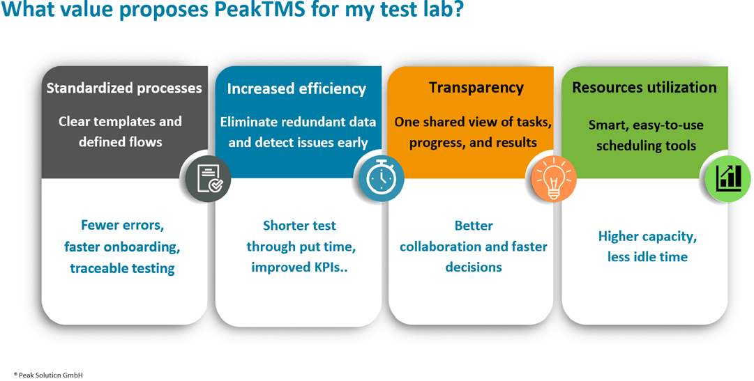 Since many years PeakTMS is THE well proven platform for test lab management in various industrial areas.