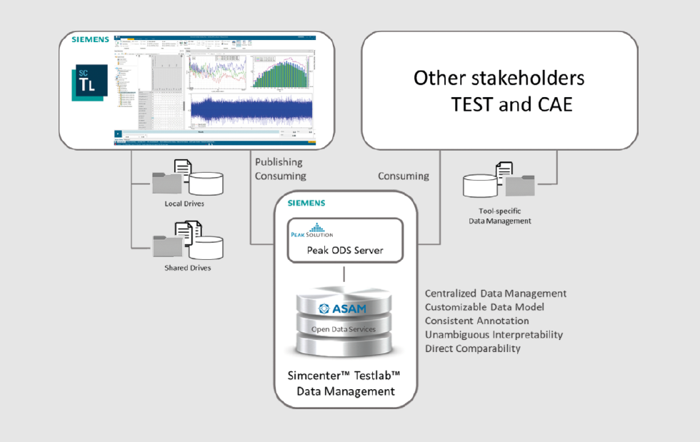 The extensibility of the ASAM ODS standard allowed Peak Solution and Siemens to implement a background process that integrates data from different vendors into a single structured database - without modifying the original data. Enrichment with metadata labels ensures compatibility with Simcenter Testlab and enables seamless reuse within engineering workflows.