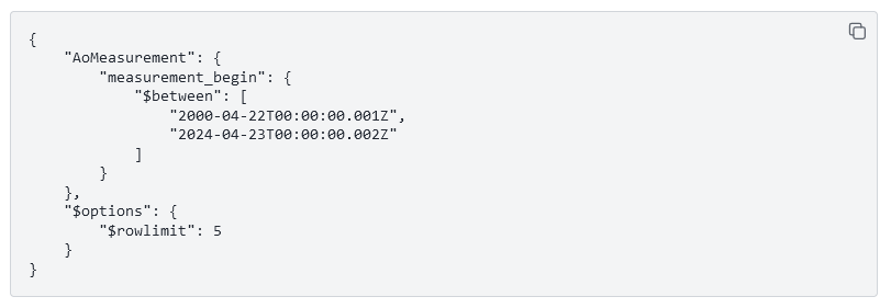 The definition of query expressions as JSON can be easily integrated into the Python language - a win-win situation for programmatic data exploration.